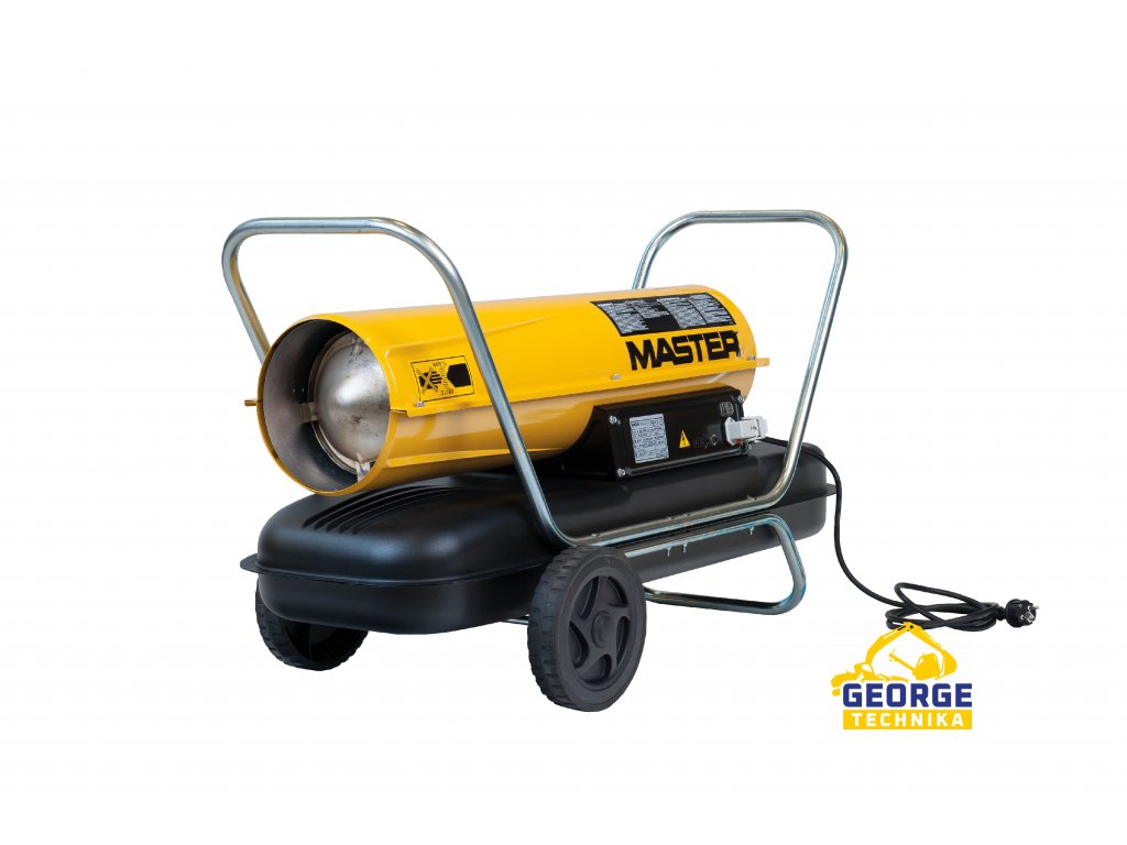 Naftové topidlo s ventilátorem o výkonu 29 kW - konektor pro připojení pokojového termostatu, napětí ventilátoru 230V. Včetně podvozku pro snadnou manipulaci. Konstrukčně uzpůsobené pro použití v těžších podmínkách.