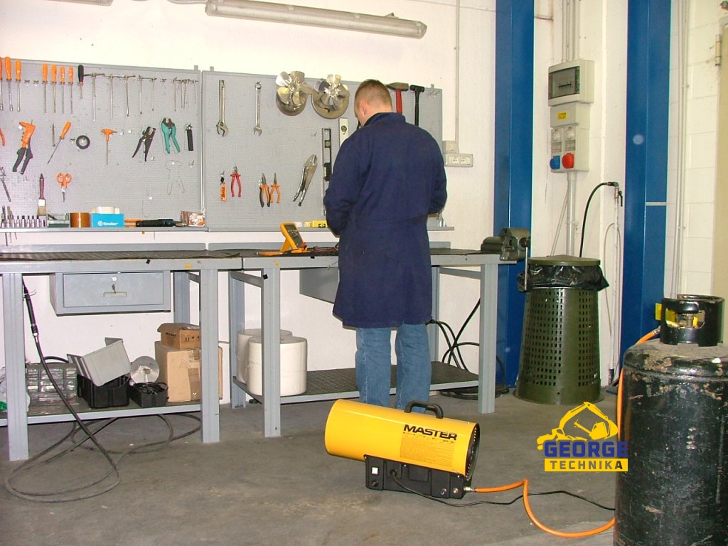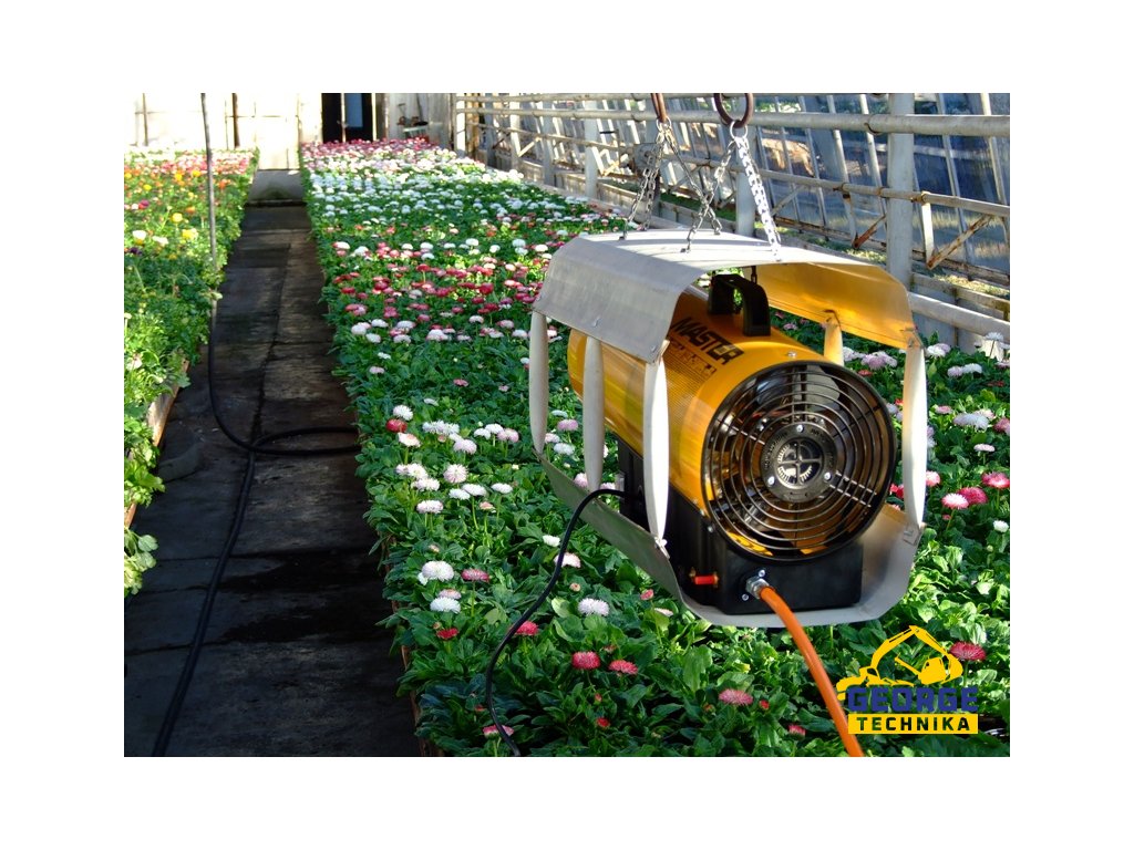 Plynové (PB) topidlo s ventilátorem o max. výkonu 18-33 kW s možnou regulací výkonu - napětí ventilátoru 230V.