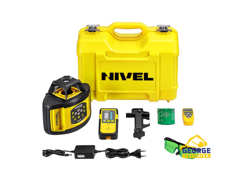 vše obsaženo v balení – nivelační přístroj je standardně dodáván s praktickým příslušenstvím (s laserovým senzorem, držákem laserové nivelační latě, dálkovým ovladačem, bateriemi Li-ion, laserovými brýlemi, laserovým terčem, nabíječkou a přepravním kufrem)